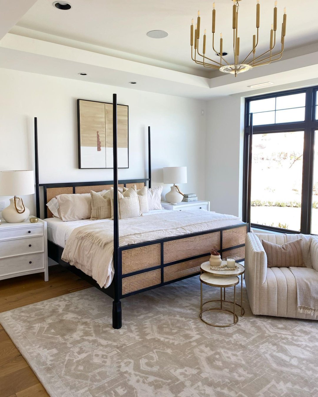 If the chandelier is being hung in your bedroom or living room, place it in the middle of the room or above a bed or coffee table.